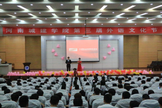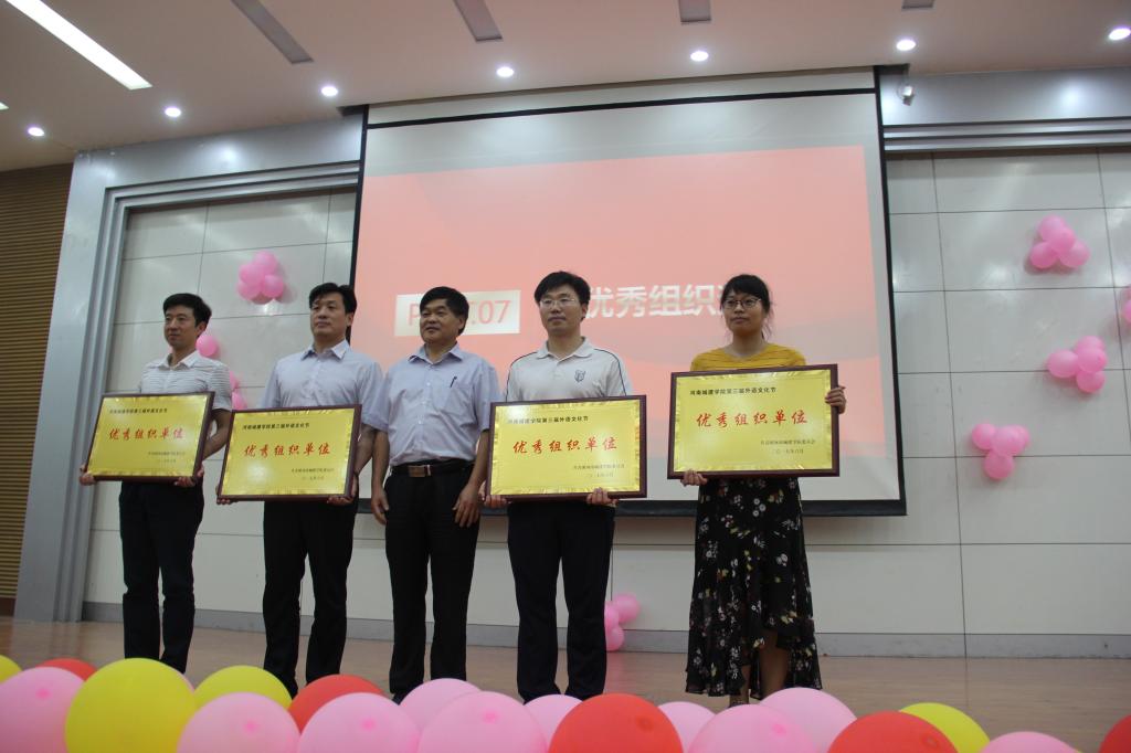 (通讯员:张枭枭)6月13日晚7:00,河南城建学院第三届外语文化节闭幕式暨颁奖晚会在行政楼报告厅举行。本次活动由校团委主办、古天乐太阳集团城承办。河南城建学院党委副书记张坤书、党委宣传部副部长王哲、学生处副处长樊昀瑛、教务处副处长霍松涛、团委副书记赵笑声、古天乐太阳集团城党总支书记袁晓、古天乐太阳集团城院长秦平新出席并为获奖代表颁奖,全校400余名师生观看了本场晚会。