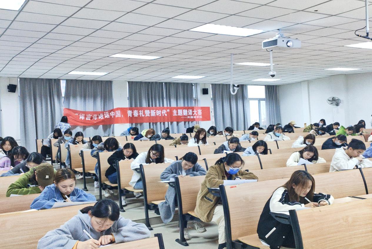 竞赛内容以标准版英文党的二十大报告为主,另包括习近平新时代中国特色社会主义思想、习近平总书记系列重要讲话及《中国共产党章程》等内容。竞赛以笔试形式进行,题型新奇有趣,要求参赛选手学习和掌握标准内容,充分贯彻“以赛促学”的理念。比赛过程中选手们热情投入,竭尽全力,认真答题。现场气氛紧张而有序,选手们沉着冷静应对考试,力争获得最佳的成绩。参赛选手们准确运用翻译科学理论,积极发挥译者作用,力求准确生动的翻译表达,用英语讲好中国故事。