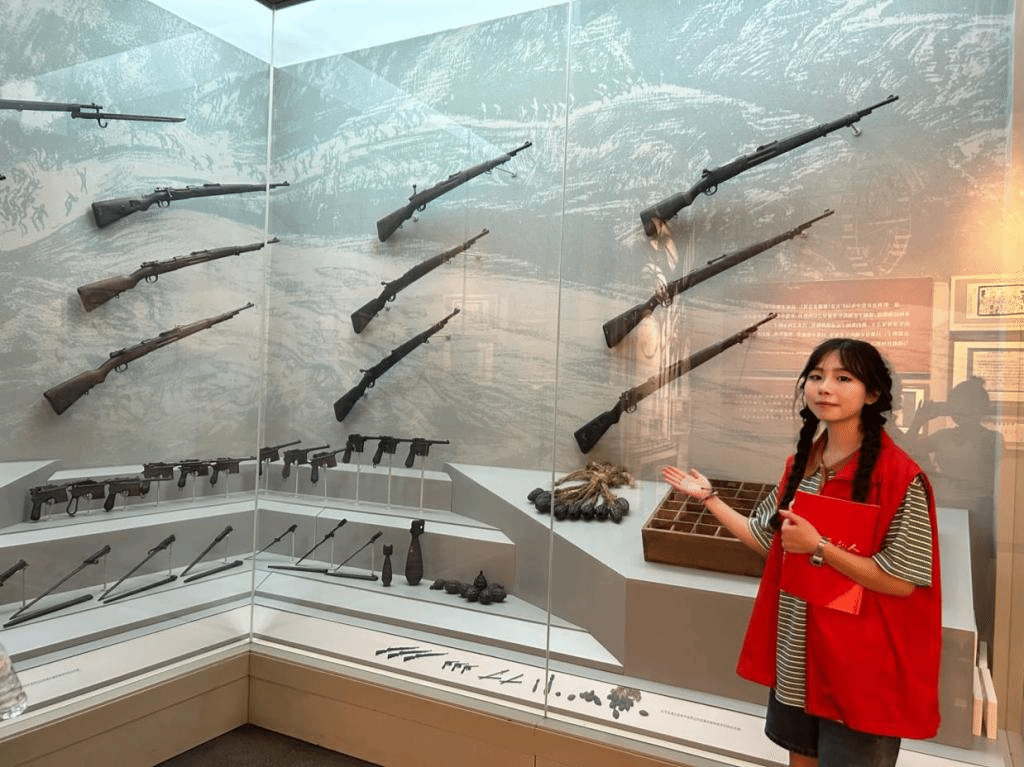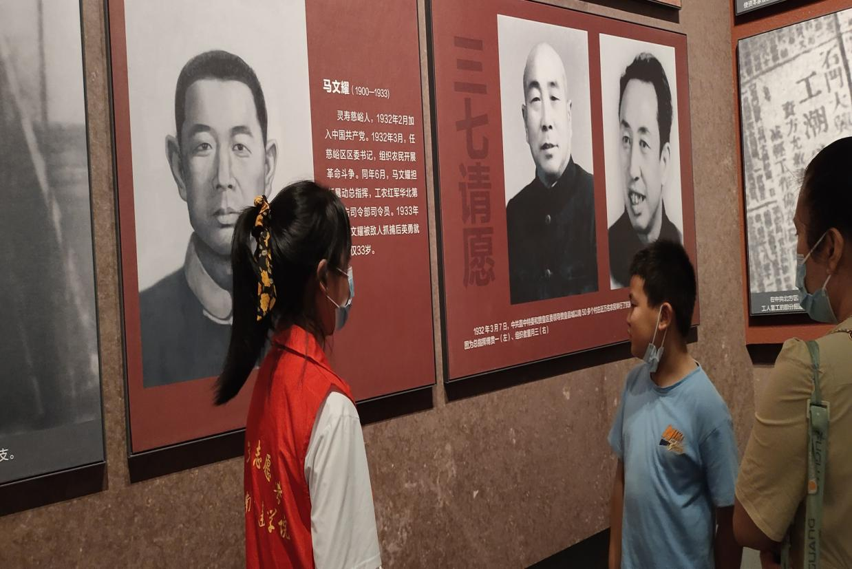 服务队成员在纪念馆内学习