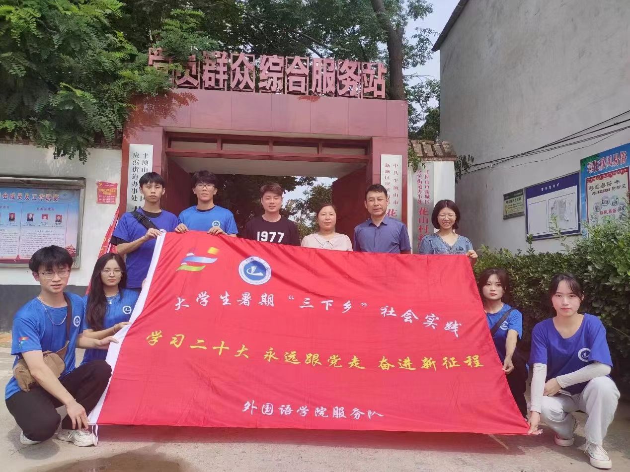 (通讯员 靳真真 王博)为深入学习贯彻党的二十大精神,引领广大青年深入基层,了解国情社情民情,响应团中央2023年暑期大学生“三下乡”社会实践活动的号召,古天乐太阳集团城党委副书记张金俊、团学办主任靳真真带领 “强国有我”服务队成员们于6月21日前往河南省平顶山市城乡一体化示范区花山村开展“宜居宜业和美乡村”社会实践调研活动。