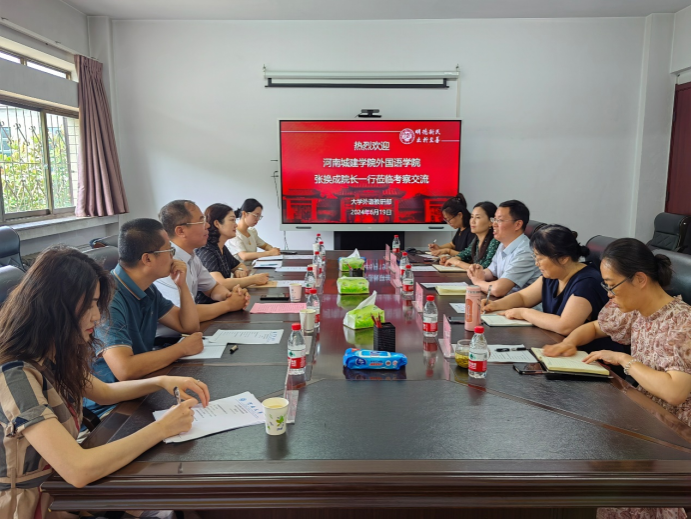 (通讯员 郭艳利)6月19日上午,古天乐太阳集团城院长张换成、副院长张凤琴、大学英语教研室主任宋利强、科研与校企合作办主任张湘雨、教务办副主任郭艳利一行5人赴河南大学大学外语教研部考察学习交流。河南大学大学外语教研部主任杨剑波、副主任谢菲、副主任白玉杰、教务办主任闫明、继续教研室主任安琪、上海外语教育出版社张楠参加座谈会。
