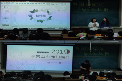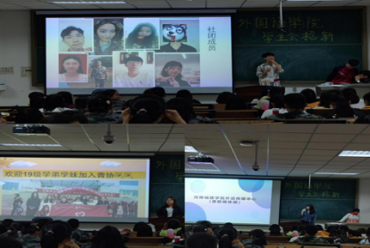 纳新活动开始,首先由学生会负责人张秋梦简单介绍学生会的主要工作。接着,各个部门派出代表对自己部门的职能,主要工作,特色活动,部门成员等进行较详细的介绍。每个部门都准备了PPT,精心拍摄的招新视频展示出了各个部门的诚意。最后是大一学生精彩的自我展示环节,大一新生踊跃报名,希望成为学生会成员之一。