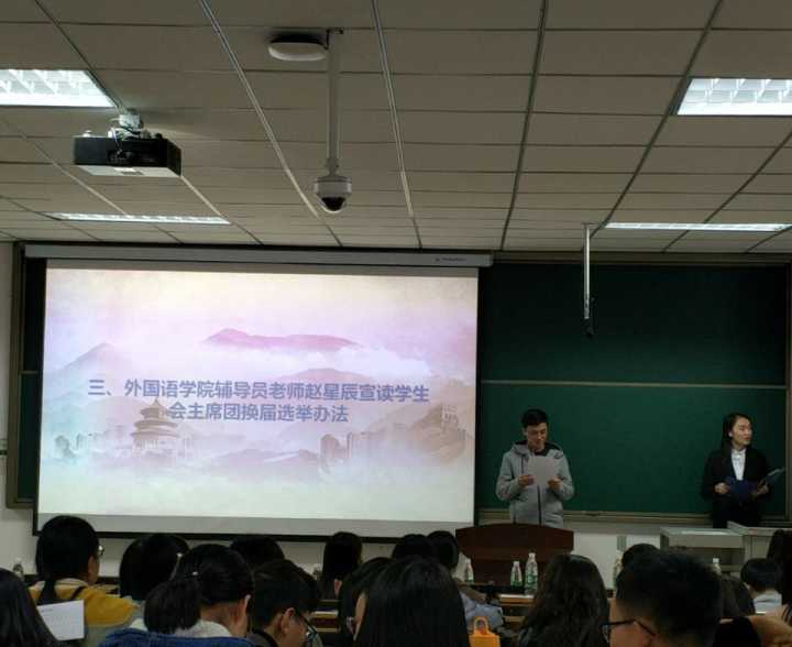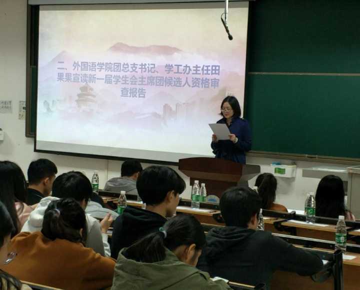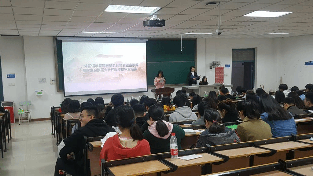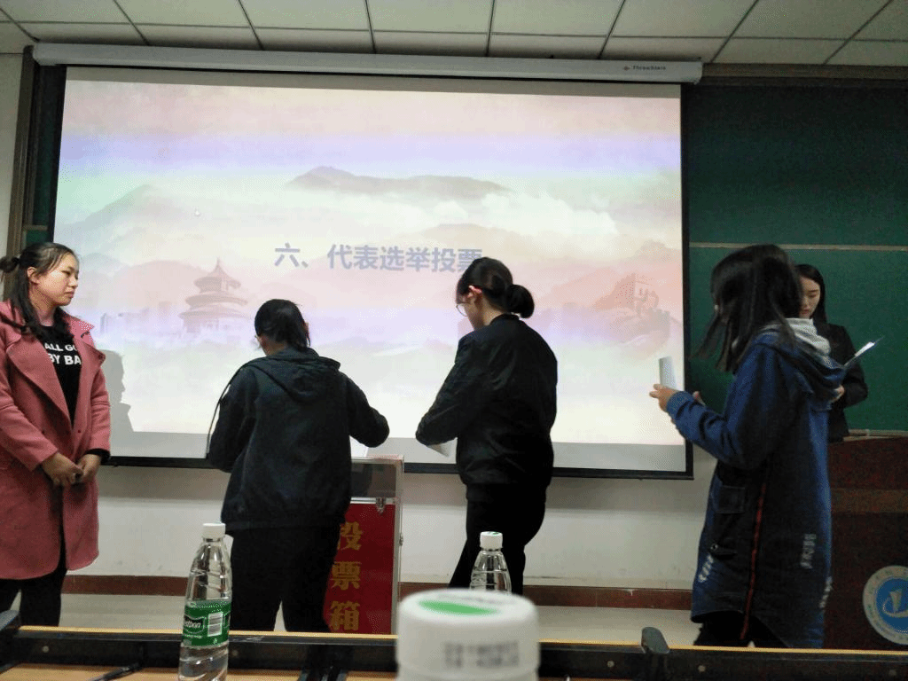 本次大会秉承“公平、公正、公开”的原则,对学生会主席团候选人进行选举。首先景丽亚老师宣读了第十届学生会换届大会代表资格审查报告;其次田果果老师宣读了新一届学生会主席团候选人资格审查报告;然后赵星辰老师宣读了学生会主席团换届选举办法;随后张雨梦宣读了总监票人、监票人、总计票人、计票人名单。最后新一届学生会主席团候选人按照顺序依次上场做竞选演讲。现场代表投票,该会议到此结束。